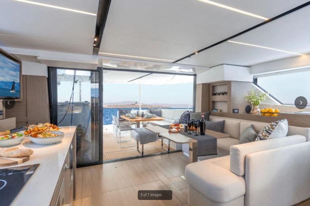 The Sunsail 465 is a cutting-edge catamaran that redefines what it means to experience the open water. With its sleek design, luxurious amenities, and exceptional performance, the Sunsail 465 offers a truly unforgettable sailing experience. The Sunsail 465’s innovative design combines the saloon and aft cockpit into a versatile entertainment area, perfect for socializing and relaxing. The sliding companionway door allows for seamless indoor-outdoor living, while the flexible seating and table arrangements provide customizable comfort.